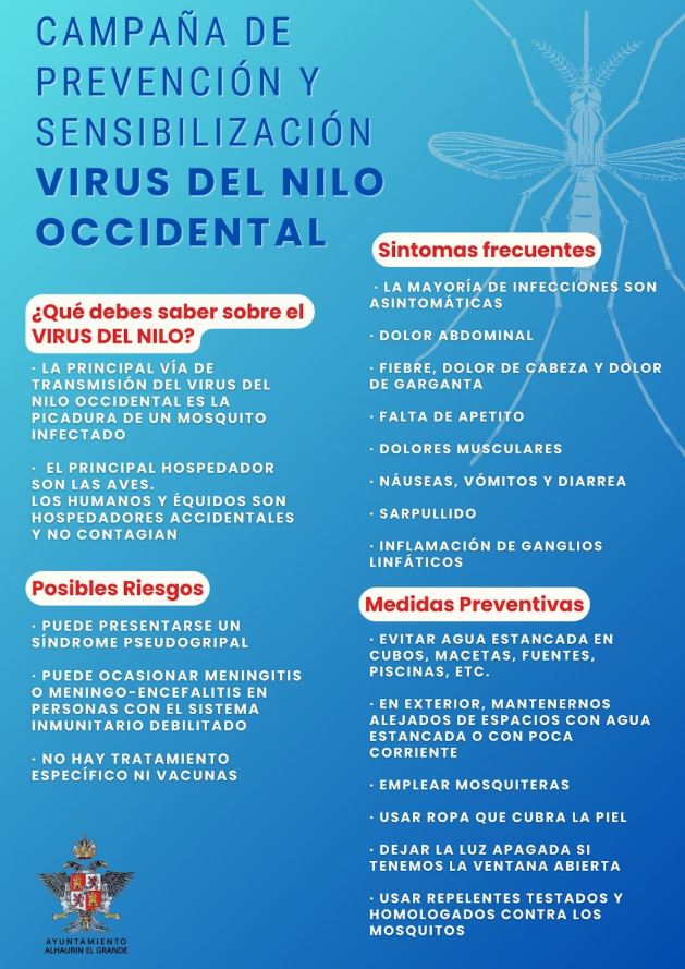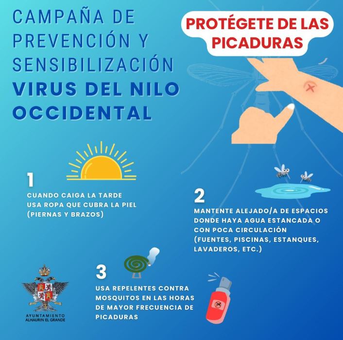 El área de Medio Ambiente del Ayuntamiento de Alhaurín el Grande da estos consejos para evitar las picaduras de mosquitos y prevenir el virus del Nilo Occidental.